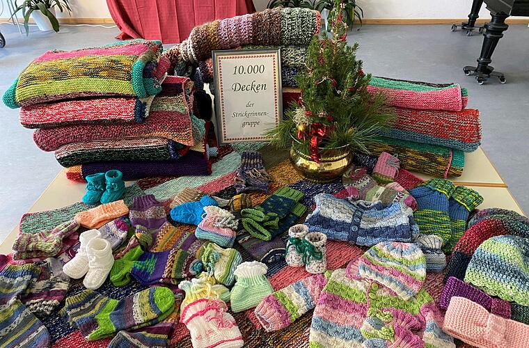 Die Seniorinnen des Aktivkreises Heroldsbach haben ihre 10.000 Decke gestrickt. Früher gingen die wärmenden Spenden nach Südamerika, jetzt nach Osteuropa.