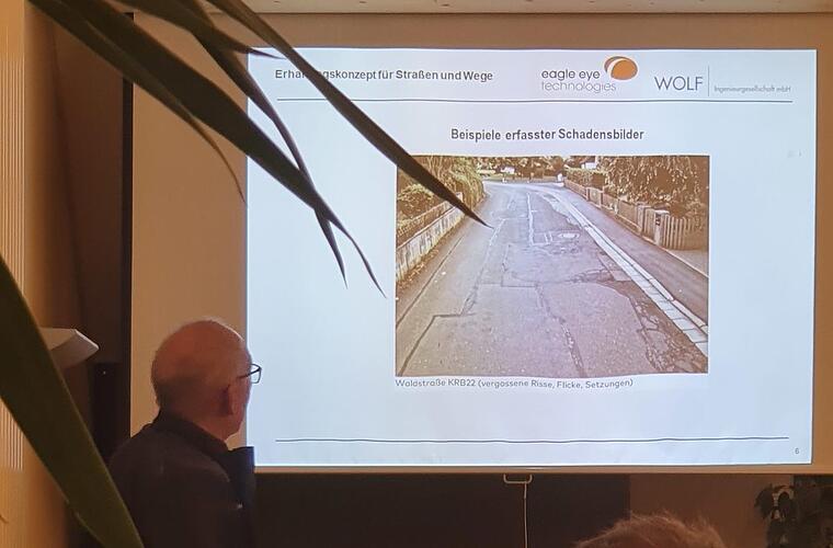 "Sie haben ja im letzten Jahr entschieden, eine Bestands- und Zustandserfassung der Gemeindestraßen durchführen zu lassen. Das Ergebnis kann ich Ihnen heute vorstellen", trug Ingenieur Peter Bittel von der Ingenieurgesellschaft Wolf in der Sitzung des Gemeinderates in Kirchehrenbach vor. Für die Erstellung dieses Erhaltungskonzeptes wurden 2018 von der Firma Eagle-Eye-Technologies innerorts insgesamt elf Kilometer der Gemeindestraßen abgefahren und die Schäden aufgenommen und fotografiert. "Dabei wurde die Geometrie von 268 Flächen mit einer Gesamtgröße von fast 75.000 Quadratmetern erfasst und tabellarisch aufgelistet", erklärte Bittel. Hier kam beispielsweise zutage, dass 61.596 Quadratmeter der Fahrbahnen asphaltiert sind, 1287 Quadratmeter sind eine Decke aus Betonstein, 105 aus Naturstein und 65 Quadratmeter sind wassergebunden.