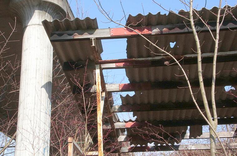 Es sieht aus wie im "Wilden Westen". Die Hütten bestehen aus ein paar Metallstreben, darüber Wellblech, das teilweise bereits einen Blick in den blauen Himmel preisgibt. Die Seitenwände sind eingefallen, die Fenster zersplittert. Die Balken sind morsch. Auf einer Metalltreppe tritt der Benutzer nach drei Stufen ins Leere, weil die restlichen Trittbretter fehlen.