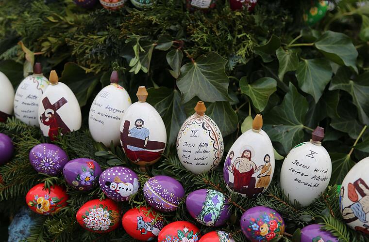 Da in Leutenbach auf natürliche Eier Wert gelegt wird, muss auch immer wieder nachgebessert werden. Einzigartig in Leutenbach dürfte die komplette Darstellung des Leidensweges Christi auf bemalten Gänseeiern sein. Im Herzen des Dorfes gelegen, unweit der Pfarrkirche, schließt sich so im Besonderen der Kreis zum Osterfest.
