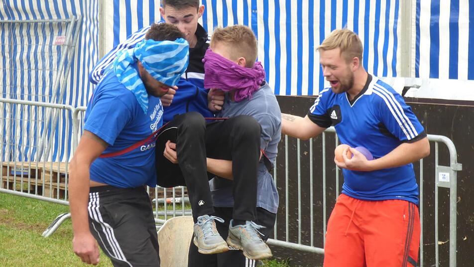 Wenn sich der Chef des SC Kühlenfels, Franz Macht, Spiele für seine Jungs ausdenkt, dann ist die Gaudi vorprogrammiert. Entsprechend lustig her ging es bei den "Kümasa Schofmelkerspielen" im Rahmen der Kühlenfelser Kerwa. Diesmal hatte sich Macht eine Art Wagenrennen mit dem Schubkarren durch einen Hindernisparcour ausgedacht. Der "Wagenlenker" saß im Schubkarren.