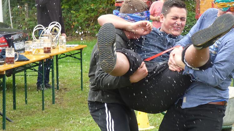 Wie es sich zu einer Kerwa gehört, bestand der "Kraftstoff" natürlich aus dem Kirchweihfestbier, das von den Teilnehmern der vier Mannschaften so schnell wie möglich eingesaugt werden musste. Ein Stechen mit Wasserbomben und Torschüssen in Gummistiefeln sollte am Schluss noch den Turniersieger ermitteln.