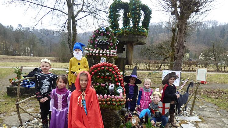 Kinder haben einen neuen Osterbrunnen erdacht: In Behringersmühle werden Märchen dargestellt.