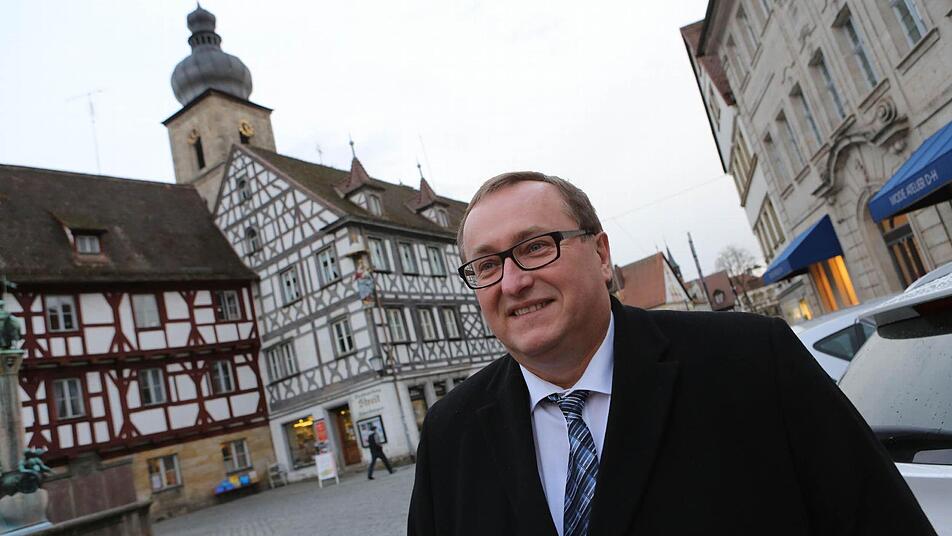 Den Ort unseres Treffens soll Manfred Hümmer aussuchen. Es soll ein Ort sein, der etwas über ihn aussagt. Über ein Hobby vielleicht, oder seinen Lebensmittelpunkt. "Da kommt eigentlich nur das Rathaus infrage", sagt Hümmer und lacht. "Mein Hobby ist die Politik." Gesagt, getan: Wir treffen uns am Rathaus. Dort will Manfred Hümmer hinein, er will am 16. März Franz Stumpf als Oberbürgermeister ablösen. Bis es soweit ist, machen wir eine Rundfahrt durch Hümmers Forchheim.