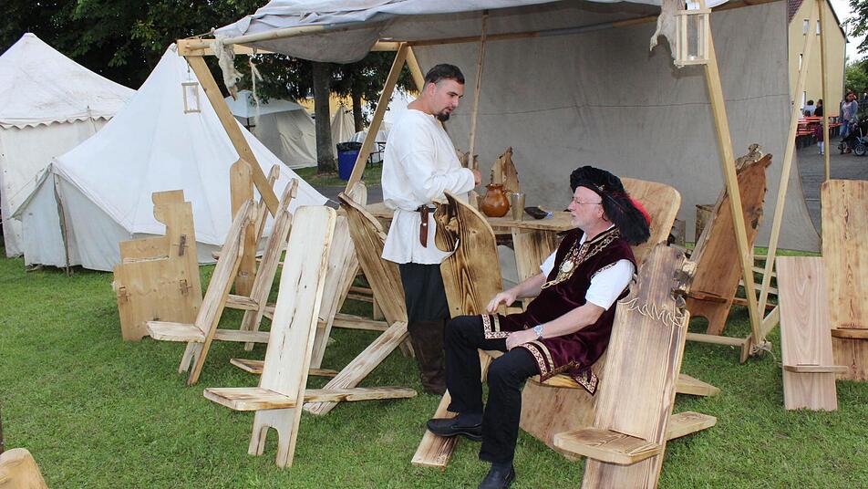 Dabei zog vor allem der erstmals abgehaltene Mittelaltermarkt unter der Federführung der Hainburg-Ritterschaft auf dem St.-Martin-La-Plaine-Platz hinter der alten Schule an allen drei Festtagen die Besucher an. Dabei konnte man auch Bürgermeister Wolfgang Rast als Ratsherr gewandet beobachten. Einen Besuch wert war auch der Rathaus-Biergarten , wo man sich mit allerlei fränkischen Spezialitäten der Vereine verwöhnen, und solange es trocken blieb, auch vom Duo "C´est la vie" musikalisch unterhalten lassen konnte.