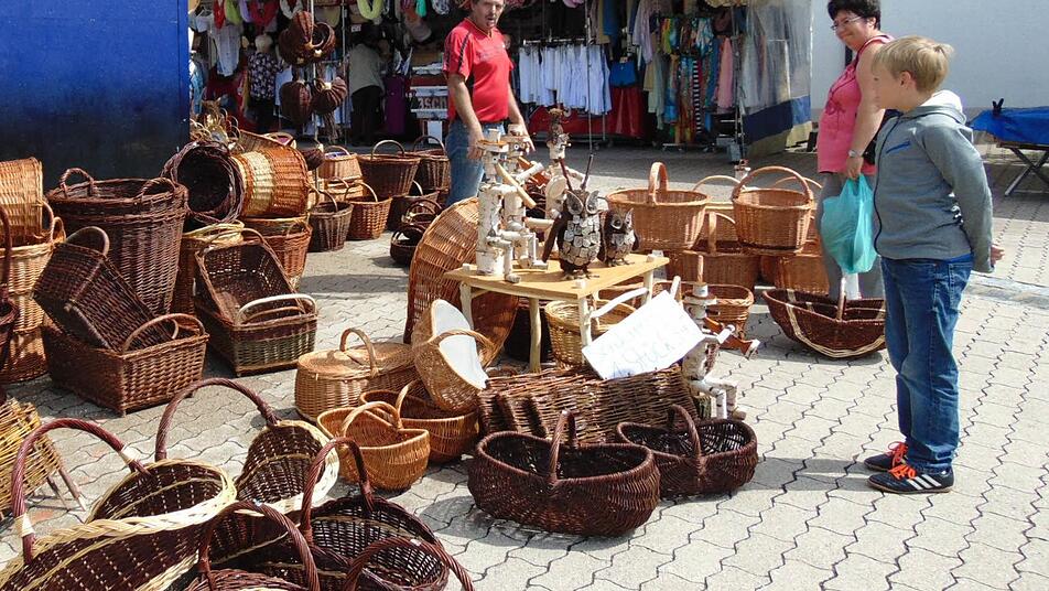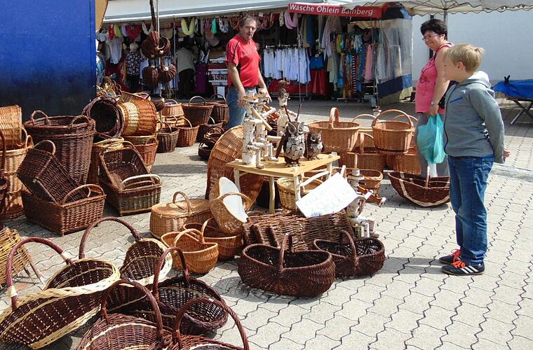 Ab elf Uhr gehörte der Platz um den Obstgroßmarkt herum den Schaustellern, Händlern und Gewerbetreibenden, die vielfältige Ware angeboten haben. Viele Festbesucher interessierten sich für den selbst hergestellten Korbwaren.