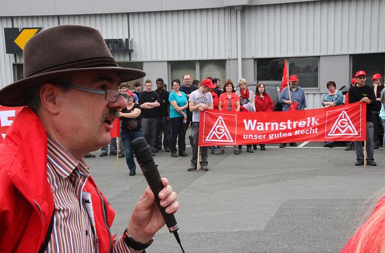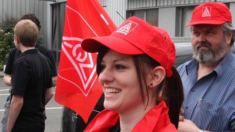 "Wir können etwas erreichen", rief Betriebsratsvorsitzende Jana Harmuth den Kollegen zu und erinnerte an die Tarifrunde vom Vorjahr, die den Metallern mit 4,3 Prozent Plus den größten Zuwachs seit mehr als zehn Jahren gebracht hat.