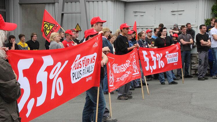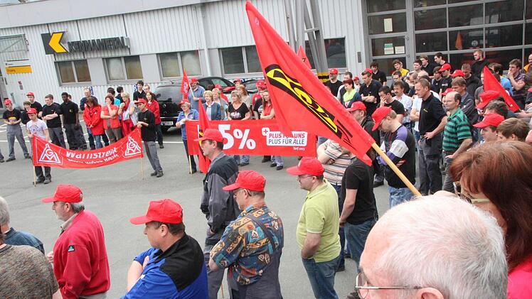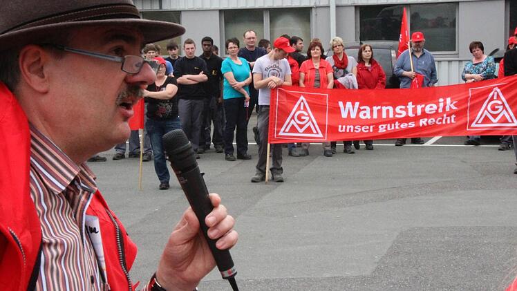 gut bis befriedigend, informierte Gewerkschafter Gebhardt. Deshalb sei das Arbeitgeber-Angebot indiskutabel. Auf die zwei Prozent Preis- und die 1,5 Prozent Produktivitätssteigerung, die für Unternehmer "verteilungneutral" seien, habe die Gewerkschaft zwei Prozent Lohnsteigerung draufgepackt. Siemens, VW, BMW und Audi erwirtschafteten Gewinne in Milliardenhöhe und auch Bosch, Schaeffler und Kennametal hätten eine hervorragende Gewinnsituation. "Wenn die deutsche Metallindustrie Exportweltmeister ist, dürfen die Beschäftigten nicht mit einem Lohn auf Kreisklassen-Niveau abgespeist werden", sagte Gebhardt.