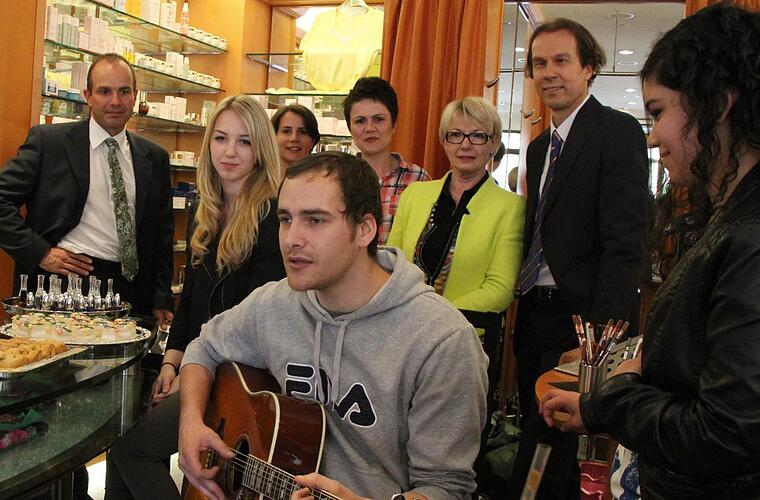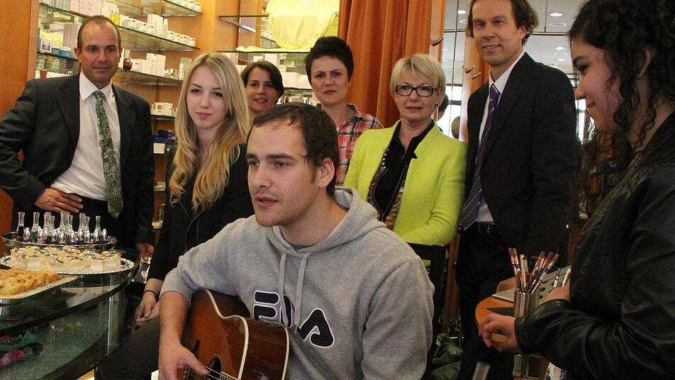 Michael Lane, der Voice-of-Germany-Finalist aus Dorfhaus, spielt und singt in der Parfümerie Lorber in Forchheim.
