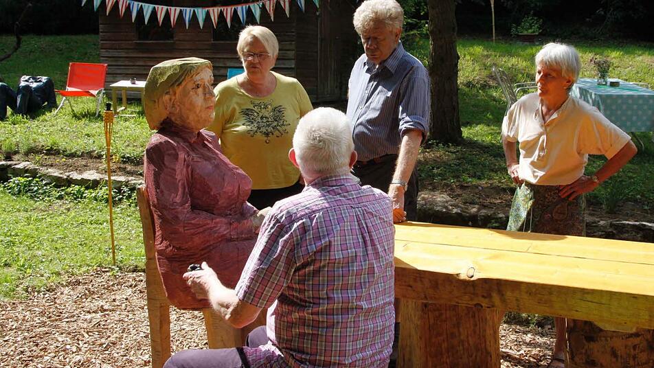 Im "Heidgärtla" leisten den Besuchern Holzskulpturen Gesellschaft. Clemens Heinl hat sie geschaffen.