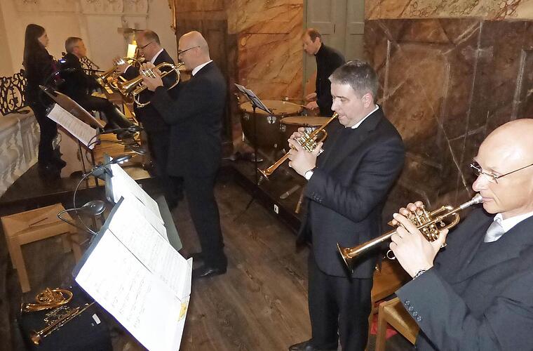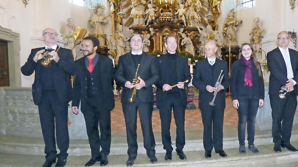 Das Trompetenensemble der Bamberger Symphoniker befinden sich bei ihrem Auftritt in der Gößweinsteiner Basilika auf der Höhe ihrer Kunst.
