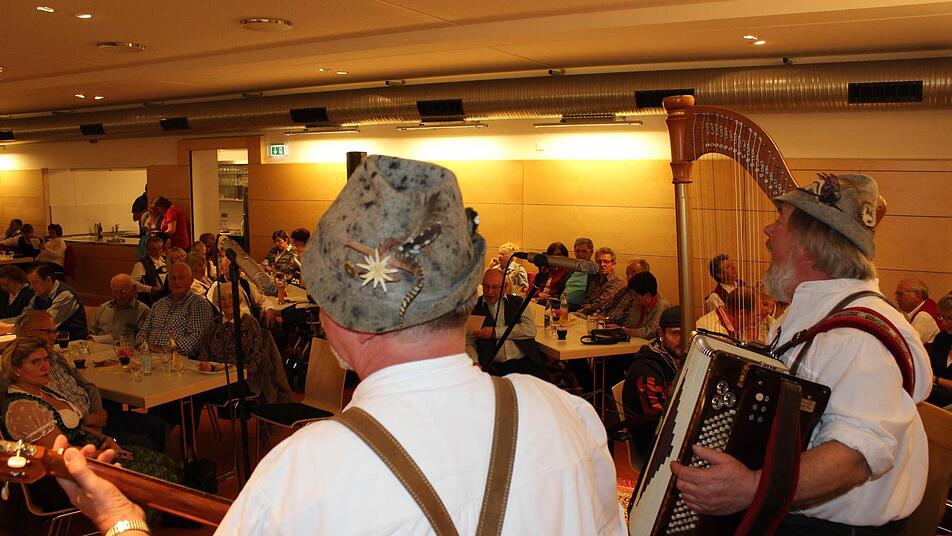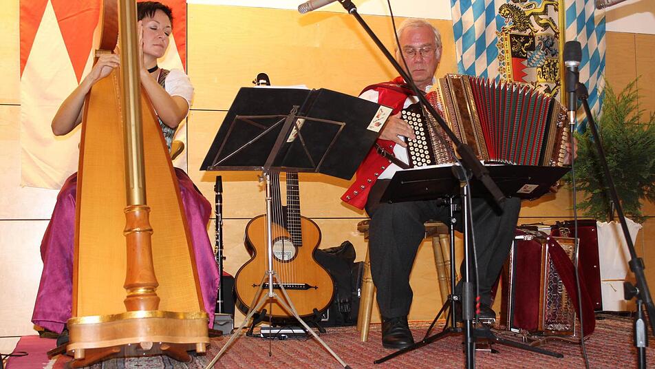 Einem musikalischen Leckerbissen glichen die Auftritte von Georg Koller und Barbara Regnat aus Nürnberg. Als "knopfsaiten" traten sie den Beweis an, wie sich die virtuose Kunst einer "Jugend musiziert"-Gewinnerin und Harfenlehrerin wie Barbara Regnat, die auch mit der Klarinette oder der Okarina zu begeistern weiß, mit den Klängen der Steierischen Harmonika oder der Kontragitarre vereinbaren lässt. Letztere Instrumente wurden perfekt von Georg Koller beherrscht. Die beiden können aber auch noch mehr, nämlich das Vortragen von Prosa, egal ob im fränkischen Dialekt oder in Hochdeutsch. Das Ganze wird dann von ihren beeindruckenden Stücken umrahmt.