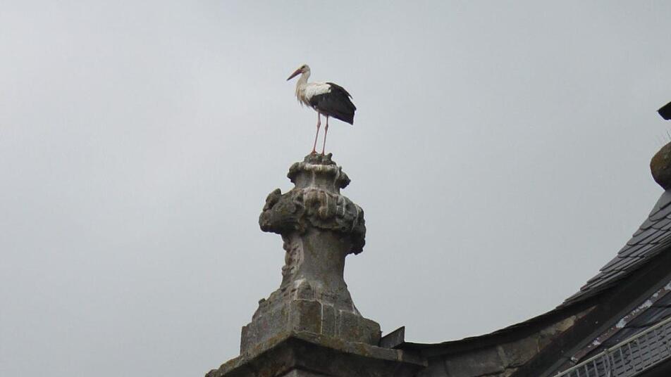 Auch in Kirchehrenbach waren die Weißstörche seit Samstag am Dorfplatz zu Gast. Ihr Klappern war von verschiedenen Dachfirsten aus rund um und auf der Bartholomäus Kirche zu hören. Ein Tourismusmagnet sind die Störche im Landkreis noch nicht, aber dennoch ist es ein seltenes Naturschauspiel, wenn man so viele Störche auf einem Haufen beobachten kann.
