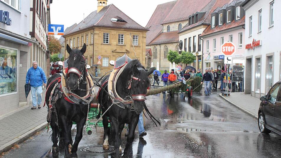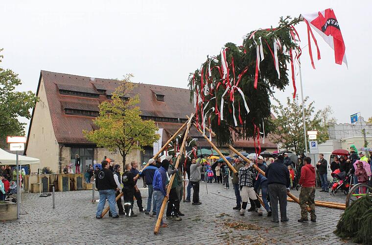 Nach einem vollkommen verregneten Kirchweihauftakt am Samstag, als das Aufstellen der beiden um die 18 Meter hohen Kirchweihbäume auf dem Sportgelände zu einer feuchten Angelegenheit wurde, zog es an den folgenden beiden Tagen bei Sonnenschein hunderte Besucher in den Klosterhof, die Erlanger Straße oder den Zehnt platz.