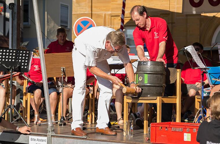 Weit wichtiger als das Ergebnis war allerdings, dass bei dem Spiel 900 Euro zusammengekommen sind. Das Geld kommt nun den beiden örtlichen Kinderkrippen zugute. Die angenehme Pflicht, das erste Bierfass anzustechen, meisterte Bürgermeister Heinz Richter (FWG) einigermaßen souverän.