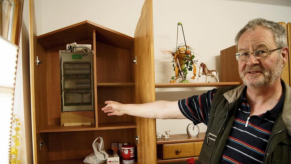 Diese wird gleich mal von den fremden Menschen vor der Tür genutzt, schließlich interessiert alle Beteiligten, wie es aussieht, seit Detlev Behrens mit "Pack mer's" und vielen Möbeln dafür gesorgt hat, dass Steckdosen hinter dem Sofa und Stromkästen in der Wohnzimmervitrine verschwinden. Mit Joghurt in den Mundwinkeln spitzt der Junge heraus. Im Hintergrund läuft Musik.