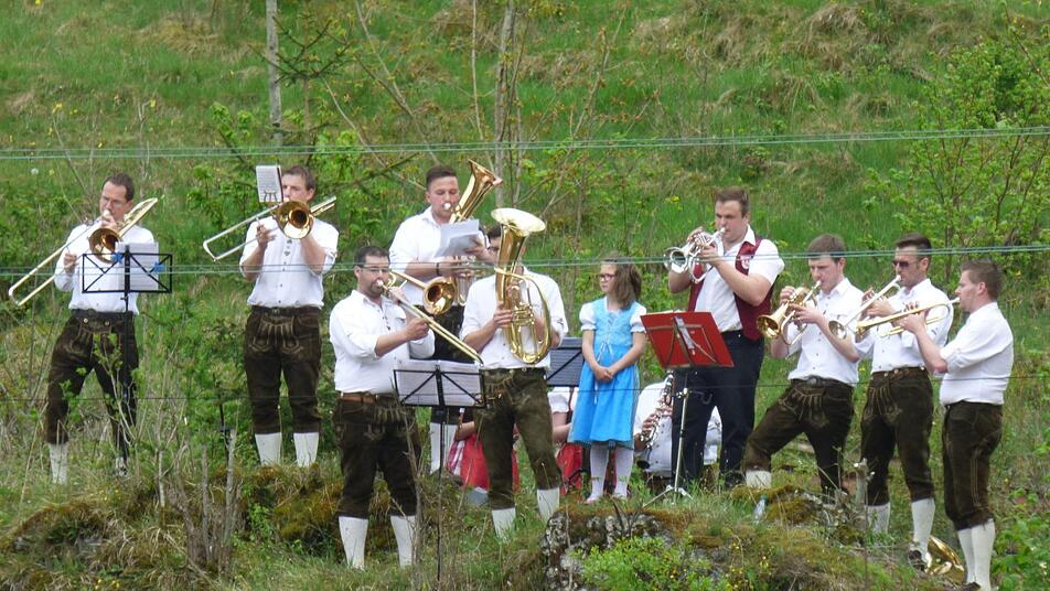 Da Oberailsfeld von Berghängen umrahmt ist, bot es sich an, dass einige der Kapellen auf den umliegenden Anhöhen ins Tal spielten. So die Blasmusik Kirchenbirkig, die vom Taubenstein hinter dem Gasthof der Held Bräu als erste Kapelle aufspielte, nachdem die Jubelkapelle schwungvoll auf den Festplatz vor der Kirche-St.-Burkard eingezogen war.