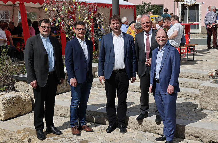 In ihren Grußworten lobten Landrat Dr. Hermann Ulm und der Landtagsabgeordnete Michael Hofmann (beide CSU) das gelungene Projekt, so hob Ulm die geschaffene Aufenthaltsqualität auf dem neuen Dorfplatz sowohl für die Einheimischen als auch für die Wanderer und Radfahrer im Tourismusgebiet Trubachtal hervor. Hofmann erklärte, es sei der Staatsregierung ein großes Anliegen, nicht nur die städtischen Zentren zu stärken, sondern auch die ländliche Entwicklung zu fördern, indem man den Ämtern für die ländliche Entwicklung möglichst umfangreiche Mittel zur Verfügung stelle. Dies bestätigte auch Thomas Müller, Abteilungsleiter Land- und Dorfentwicklung am oberfränkischen Amt für ländliche Entwicklung aus Bamberg. Dort versuche man nach Kräften, die Gemeinden bei derartigen Vorhaben zu unterstützen und zu begleiten. Als symbolischen Abschluss der ersten beiden Bauabschnitte überreichte Hofmann Grüner zudem die Mitteilung über die Schlusszahlung der zugesagten Fördersumme.