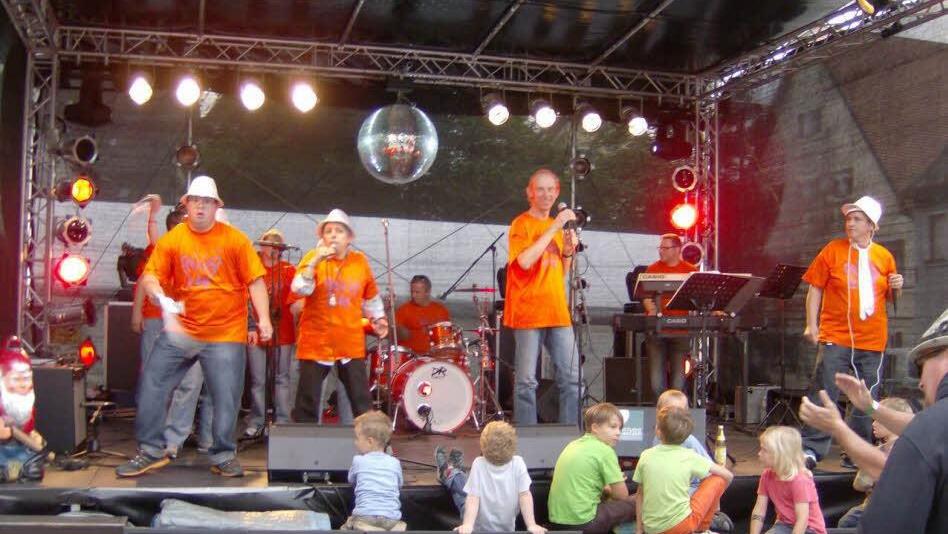 Knallorange sind die T-Shirts der Bandmitglieder, die gerade tanzen und singen. "Die Schmetterlinge der Lebenshilfe" heißt das gute Dutzend körperlich beeinträchtigter Menschen, die bei der Lebenshilfe Lauf ihr Zuhause haben und jetzt jede Menge Spaß an dem großen Auftritt in Gräfenberg.