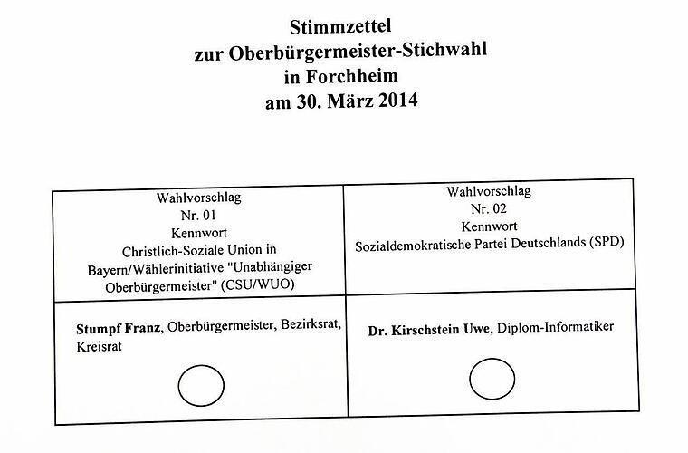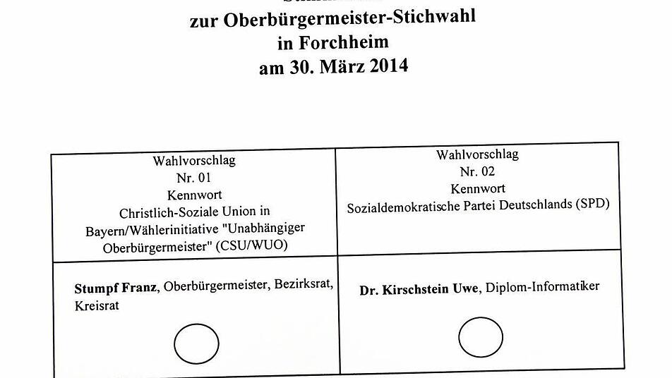 Freie Wahl Wahlleiter Jürgen Igel vermutet aber, dass bei der Stichwahl weniger Forchheimer die Briefwahl nutzen werden. "Es ist ja nur ein einziges Kreuz zu machen. Das geht schnell." Und der Stimmzettel ist recht überschaubar.