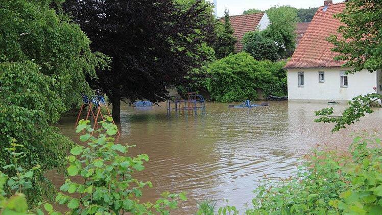 In Teilen Hallerndorfs (Landkreis Forchheim) stand das Wasser am Wochenende bis zu einem halben Meter hoch. Die Aisch schwoll in der Nacht von Samstag auf Sonntag bedenklich an. Einige Keller liefen voll.