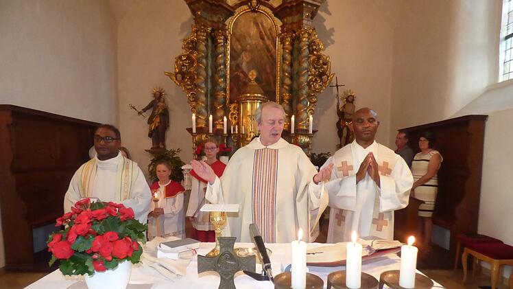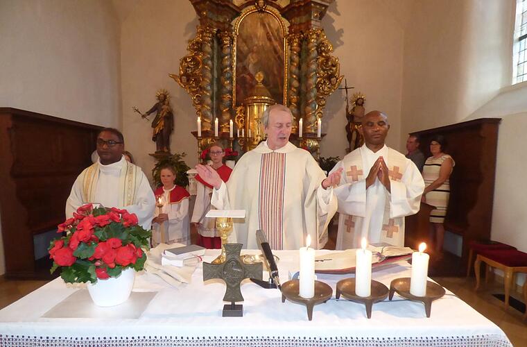 Der 60-jährige Geistliche geht nach 29 Jahren als Pfarrer von Hochstahl und Breitenlesau in den Ruhestand. Als neuen Pfarradministrator der Pfarrei Hochstahl hieß Düngfelder dann Pater Rajesh Lugun willkommen.