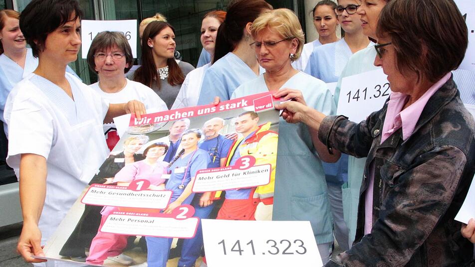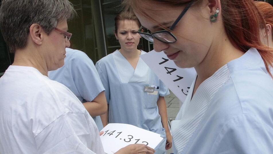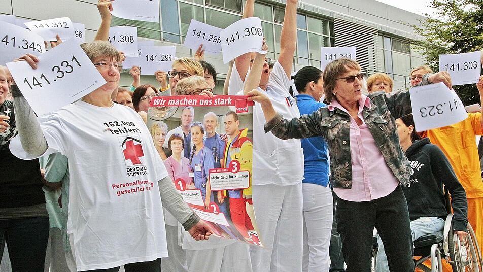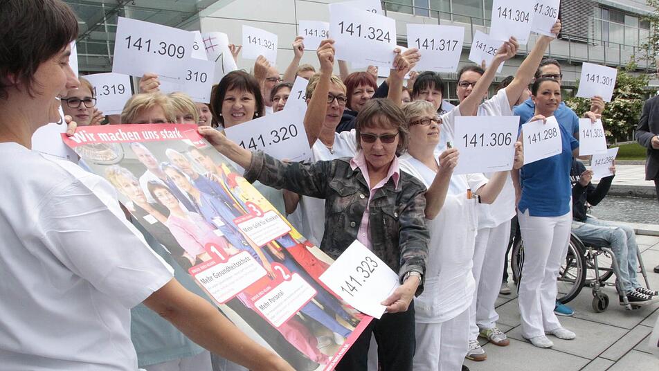Mit den Nummern 141 265 bis 141 369 - nach einer Erhebung der Gewerkschaft Verdi fehlen 162 000 Beschäftigte - machten Angestellte des Klinikums Forchheim und der Klinik Fränkische Schweiz auf die bundesweite Personalnot in Krankenhäusern aufmerksam.