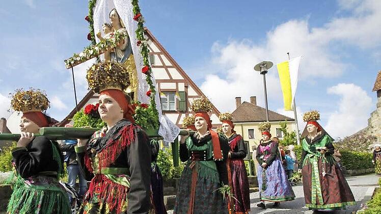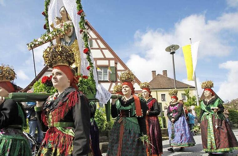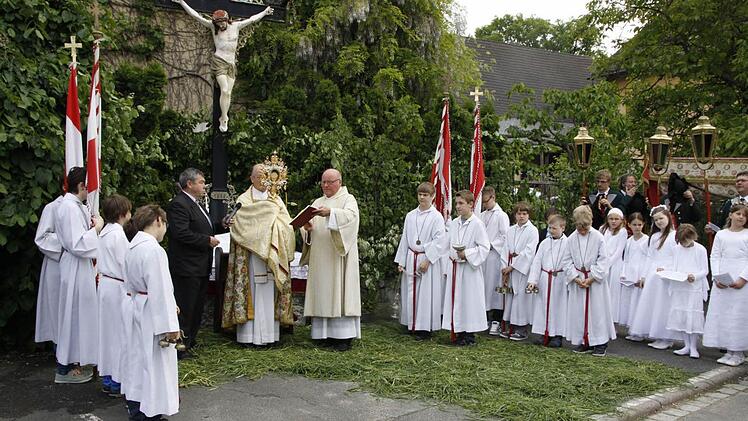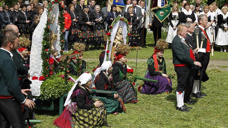 Eine der farbenprächtigsten Fronleichnamsprozessionen fand wieder in Effeltrich statt, weil dort hunderte von Gläubigen in bunten Trachten an der Prozession zu den vier Altären teilnahmen.