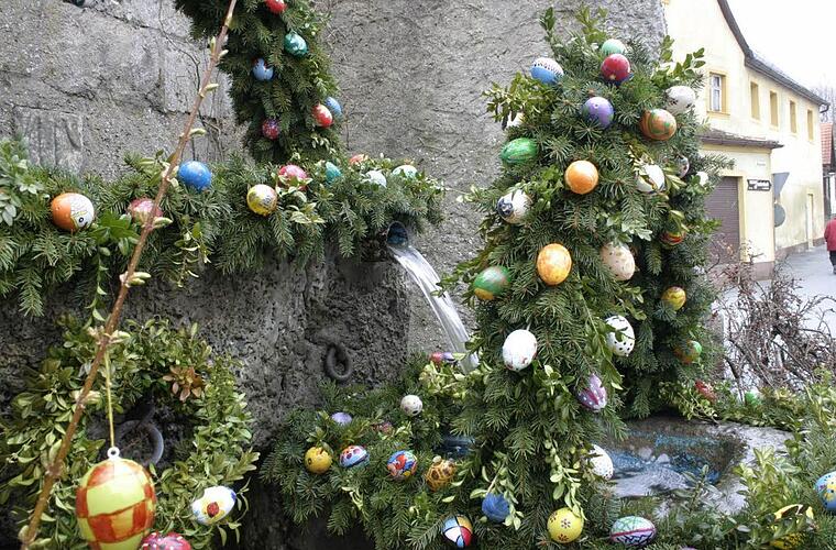 Nachdem Betrunkene immer wieder Eier zerstört haben, rangen sich die Gößweinsteiner zu einem Wechsel des Materials durch. Das ist nicht die einzige Besonderheit des Brunnens.