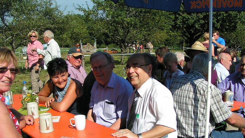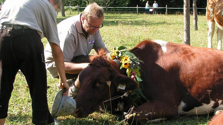 Nicht nur Rosa und Josef Saffer aus Weilersbach, sondern auch Oberbürgermeister Franz Stumpf (CSU/WUO) und Pfarrer Josef Brandl, der sich an seine Studienzeit in Benediktbeuren erinnerte, einer Gegend, wo Alm-Abtriebe Tradition sind. Der Erlös der Veranstaltung wird für einen wohltätigen Zweck verwendet: Eine Hälfte kriegt der Förderverein der Volksschule Reuth, die andere Hälfte geht an die Elterninitiative krebskranker Kinder Erlangen.