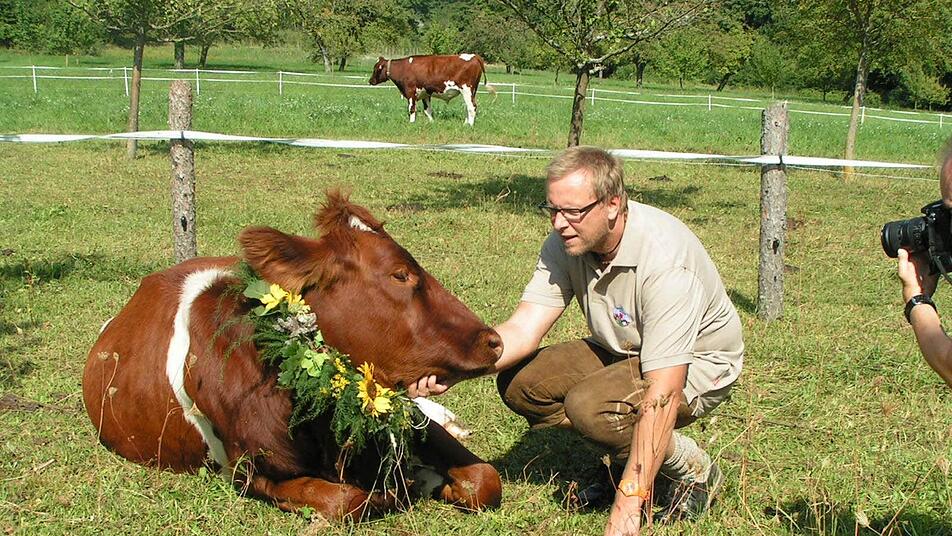 Seit fast zwei Jahren werden von Eitner und Schuster sechs Rinder in der Weidetierhaltung gehalten. Da werden die Tiere nicht gemolken, sondern mit ihrer Milch ziehen die Rinder ihre Kälber groß. Drei Rotbunte aus Tirol und drei Kühe, reines deutsches Fleckvieh, das aus Schlaifhausen von Landwirt Erwin Kern stammt. "Man sieht dass es ihnen gut geht" zeigte sich Kern erfreut als er seine "Fleckerln" wieder sah.