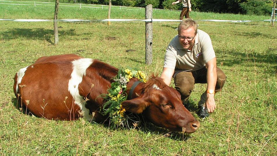 Vielmehr eine Aufgabe, die sie neben ihrem Beruf voll erfüllt und für sie gleichzeitig eine Auszeit im Berufsleben ist. "Wer Kühe hat, braucht keinen Psychotherapeuten - die hören zu, strahlen Ruhe und Zufriedenheit aus", ist Eitner überzeugt und Schuster fühlt sich einfach wohl bei seinen Kühen: "Schöner wie vor dem Fernseher". Da passt ja für beide schon der schöne Spruch auf dem Auerbergkreuz: "Wisst ihr, wo ihr gerne weilt - nach des Tages Mühen. Auf dem schönen Auerberg, da ist Ruh und Frieden".