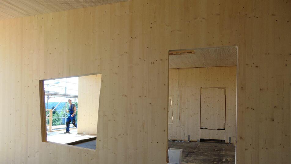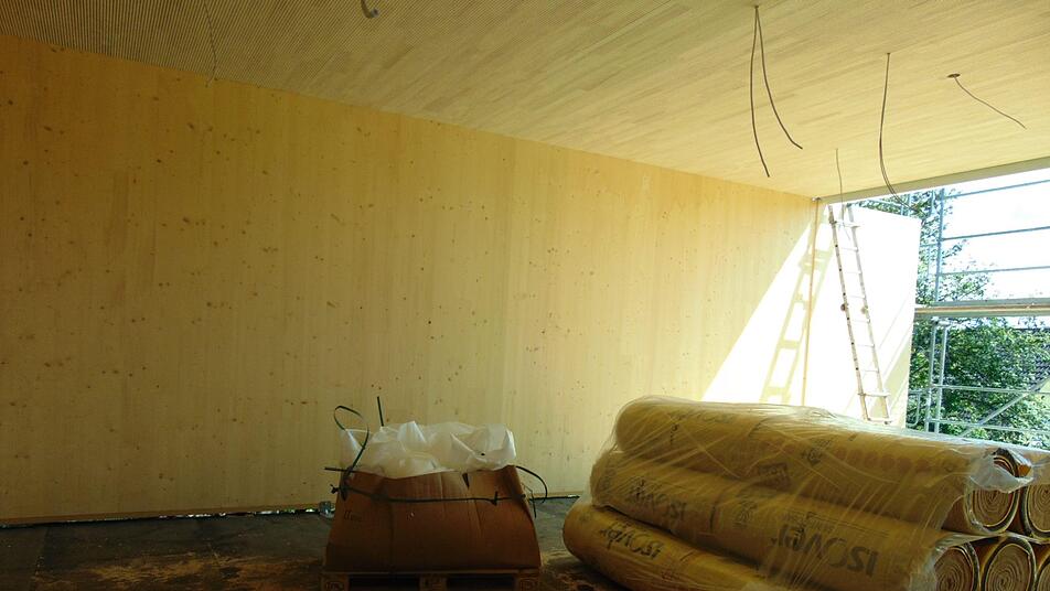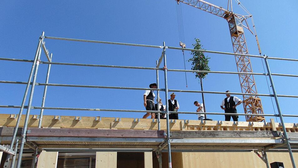 Die Handwerker erhielten auch eine gesungene Hommage für ihren Fleiß. Nicht nur Bürgermeister Hans-Jürgen Nekolla (SPD), auch die Architekten selbst gaben zu, der Bau habe noch vor einer Woche alles andere als kurz vom dem Richtfest gewirkt. "Mancher hat sich gefragt, ob wir kurz vor dem Spatenstich stehen", sagte Oliver Gebhardt, der mit Sebastian Steinlein als Architekt für den Bau verantwortlich ist.