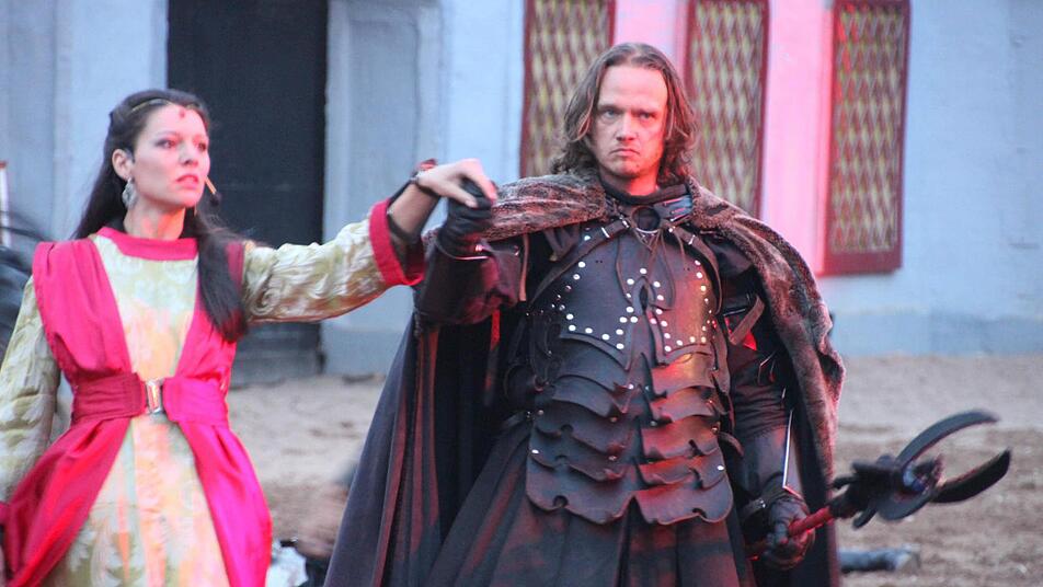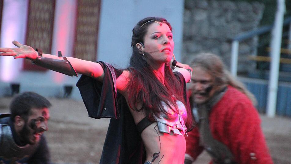Die junge Frau reckt den Daumen in die Luft: "Du warst super als Tarabas. Die ganze Premiere war gut!" Perdita Christ kann das beurteilen. Sie ist Schauspielerin und selbst schon in die Rolle der Aurelia geschlüpft. Außerdem hat sie "Das magische Amulett" zusammen mit Viktor verfasst und choreografiert - jenes Ritterspiel also, das am Samstagabend Premiere im Erlebnispark Schloss Thurn hatte.