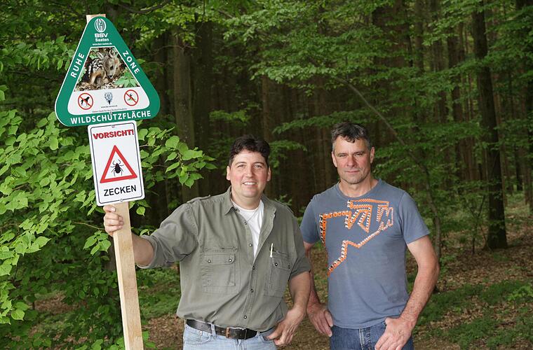Die ausgewiesenen Wildschutzflächen sollen aber auch gleichermaßen den Vögeln, Feldhasen oder Rehen Rückzugsräume geben. Unter den Ruhezonen-Schildern ist auch ein Warnhinweis vor Zecken angebracht. "Hier hat die Population enorm zugenommen", berichtet Johannes Seuberth.