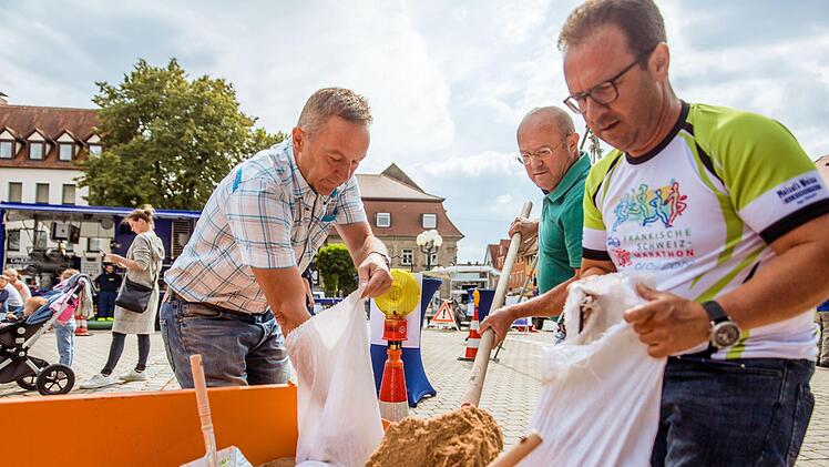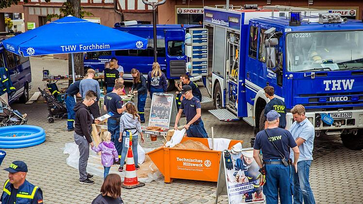 Das THW Forchheim zeigte am Samstag auf dem Paradeplatz beide Seiten. Von eben diesem bewährten Sandsack bis zur Hochleistungspumpe mit 25 000 Litern pro Minute hatten die Helfer einen Teil der Ausstattung mitgebracht, die bei Hochwasser zum Einsatz kommt.