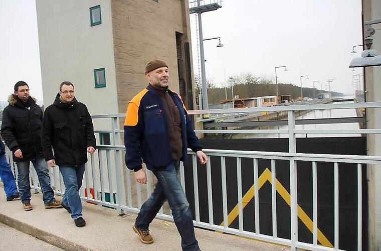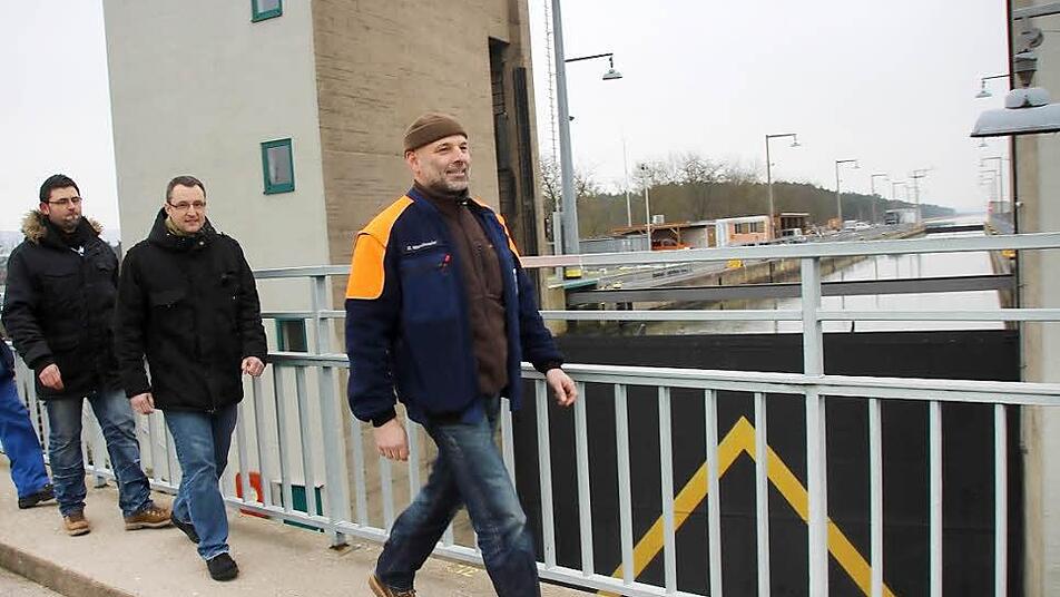 Bernd Storchmeier, Stefan und Peter Biesenecker und Hans Schmidt gehören quasi zum Inventar der Wasser- und Schifffahrtsverwaltung. "Aber wie lange noch?", fragt Stefan Biesenecker, Schichtleiter an der Schleuse in Neuses, denn die Bundesbehörde soll umstrukturiert werden. Ein Stellenabbau von 12 500 auf nur noch 10 000 Mitarbeiter ist die Folge.