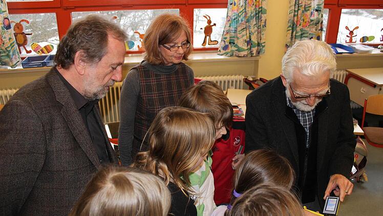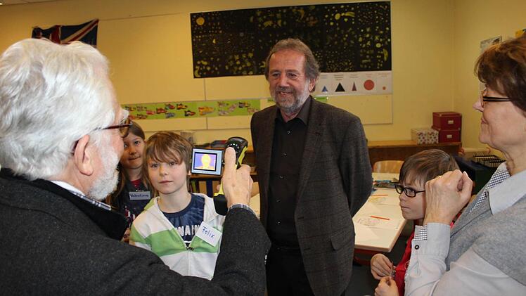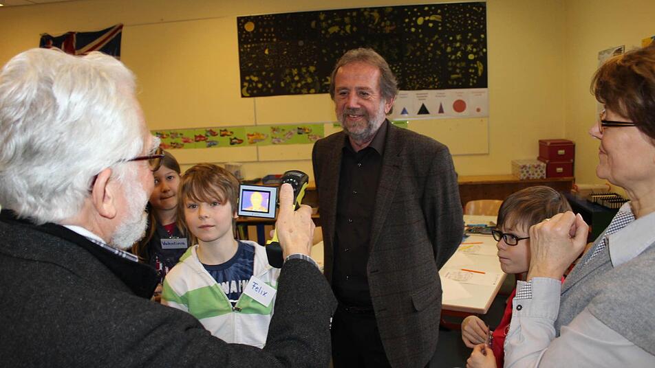 Bei einem Workshop für Viertklässler an der Volksschule Effeltrich hat Landrat Reinhardt Glauber (FW) dem Workshop-Leiter Leiter Friedrich Oehme, eine neue Wärmebildkamera übergeben. Anschließend konnten sich die 14 Buben und Mädchen ausführliche die Handhabung und Funktion des 2500 Euro teuren Geräts erklären lassen.