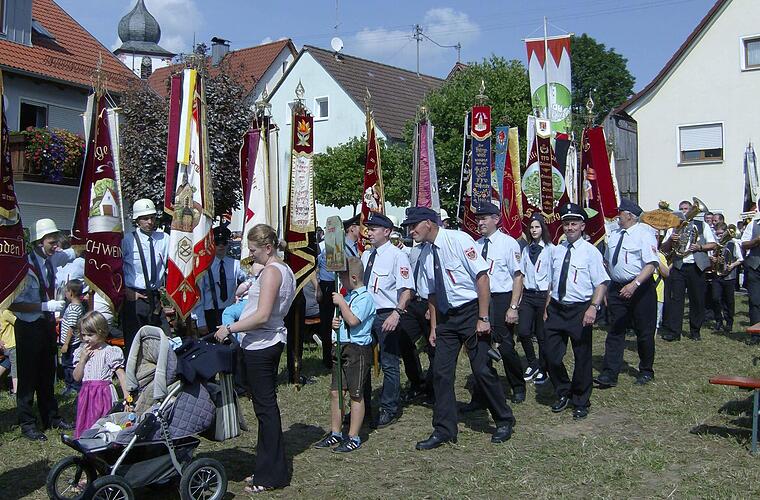 Weil Symbole für die Vielfalt eines Anlasses stehen, hat die Freiwillige Feuerwehr in Affalterthal mit ihrer 125-Jahr-Feier viele Gefühle angesprochen: Fähnchen in den vielen Blumenkübeln stellten die Festlichkeit heraus. Ein "Herzlich willkommen", lud die Gäste in das feierlich geschmückte Dorf, die Posaunen des Chors unter Leitung von Simon Gemählich jubilierten und lockten die Besucher in den Dankgottesdienst und hoben zugleich den besonderen Anlass hervor: den Stolz eines Dorfes auf ihre ehrenamtlichen Feuerwehrleute. "Wir sind stolz auf unsere Feuerwehr. Unsere Feuerwehrleute riskieren freiwillig ihr Leben und ihre Gesundheit, um anderen zu helfen", betonte Bürgermeister Stefan Förtsch.