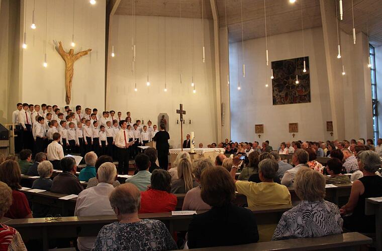 Der Nachwuchschor der Regensburger Domspatzen sang unter anderem den fünfstimmigen Chor Lauda Sion Salvatorem mit Klavierbegleitung von Johannes Köppl, der bei vielen der Gäste Gänsehaut