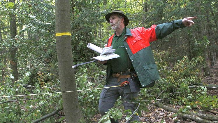Der Förster Erwin Bittermann setzt im Wald von Ebermannstadt auf Naturverjüngung. Nur punktuell sollen Wuchshüllen eingesetzt werden. Ein Pilz gibt Rätsel auf.