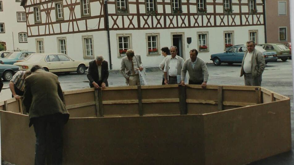 "Der Hans weiß alles", bestätigt auch Bürgermeister Helmut Krämer (CSU/Einigkeit). In den Unterlagen von Hans Dorsch ist zu lesen, dass 1730 die Tölzquelle gefasst wurde und dadurch zwei Brunnen in Heiligenstadt errichtet werden konnten. Einer in der Mausgasse und einer am Marktplatz. Es gab fließendes Wasser - aber nur am Brunnen, nicht in den Häusern. "Nach der katastrophalen Trockenheit 1949 befasste sich der Gemeinderat wieder mit dem Thema Wasserversorgung. Und 1951 wurden unter Bürgermeister Gottlieb Hösch die Häuser an die Wasserversorgung angeschlossen", erzählt Dorsch. Das Wasserbecken des Marktbrunnens zerfiel. 1984 wurde er deshalb abgebrochen, der neue Brunnen sollte näher am Rathaus platziert werden. "Man hat aus Pappe ein Muster aufgebaut, damit man sich das vorstellen kann", berichtet Krämer. Und dass der neue Brunnen zu Ehren des damaligen Bürgermeisters "Johann-Daum-Brunnen" getauft wurde.