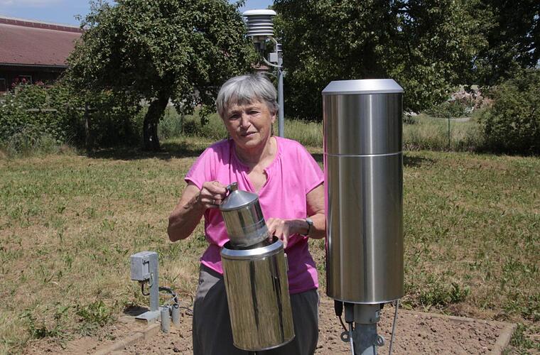 Datenerfassung seit 24 Jahren Eine der zwei Wetterstationen im Landkreis betreibt Berta Stein in Kasberg für den Deutschen Wetterdienst. Seit 24 Jahren kümmert sich die 76-Jährige darum, dass die Wetterdaten aus der Fränkischen Schweiz korrekt erfasst werden. "Ursprünglich hatte sich mein Nachbar dafür angemeldet, aber der konnte das dann doch nicht machen. So habe ich das eben übernommen", erzählt die Rentnerin. In den ersten Jahren war das noch viel Handarbeit: Die Regenmenge musste genauso gemessen werden wie dreimal am Tag die Temperatur. Inzwischen geschieht das alles automatisch. Und Steins Messwerte landen in verarbeiteter Form auf unseren Smartphones.