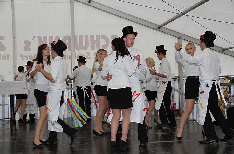 Auch beim traditionellen Betzentanz war ein Rekord zu verzeichnen. 18 junge Tanzpaare beteiligten sich daran, so viele wie seit Jahren nicht. Darüber freuten sich die Organisatoren Max Hofmann und Daniel Jere.