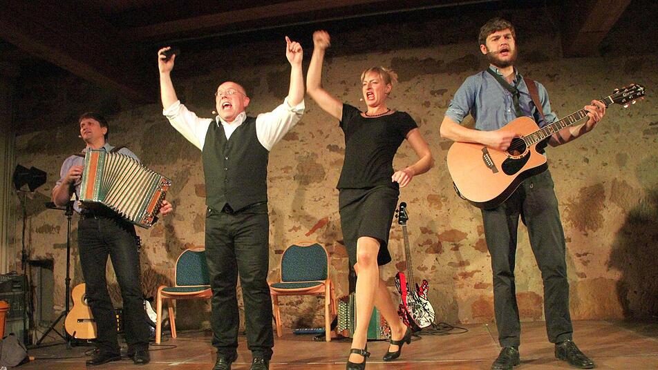 "Musikalische Perlen" brachte die "Couplet AG" anlässlich ihres 20-jährigen Bestehens in der Zehent scheune Neunkirchen am Brand unters Volk. "Jeder soll glücklich sein", befanden Jürgen Kirner und Bianca Bachmann, zweifelsohne die Köpfe der Satire-Truppe.