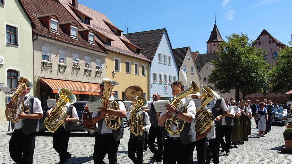 Gräfenberg brachte Musik und Stimmung ins Festzelt. Mit dem Weckruf des Posaunenchors wurde der Festsonntag schon um acht Uhr eingeleitet, damit alle rechtzeitig zum ökumenischen Gottesdienst im Festzelt waren. Anschließend wurde das neue Löschgruppenfahrzeug der Gräfenberger Wehr, ein LF 20, eingeweiht.