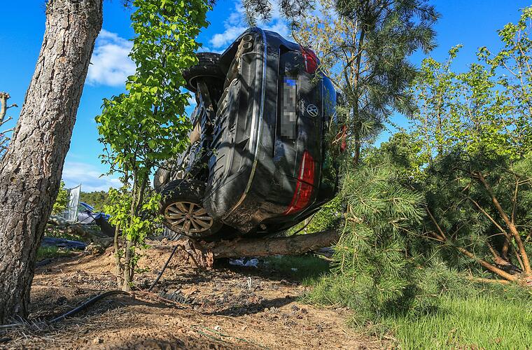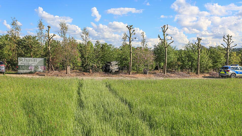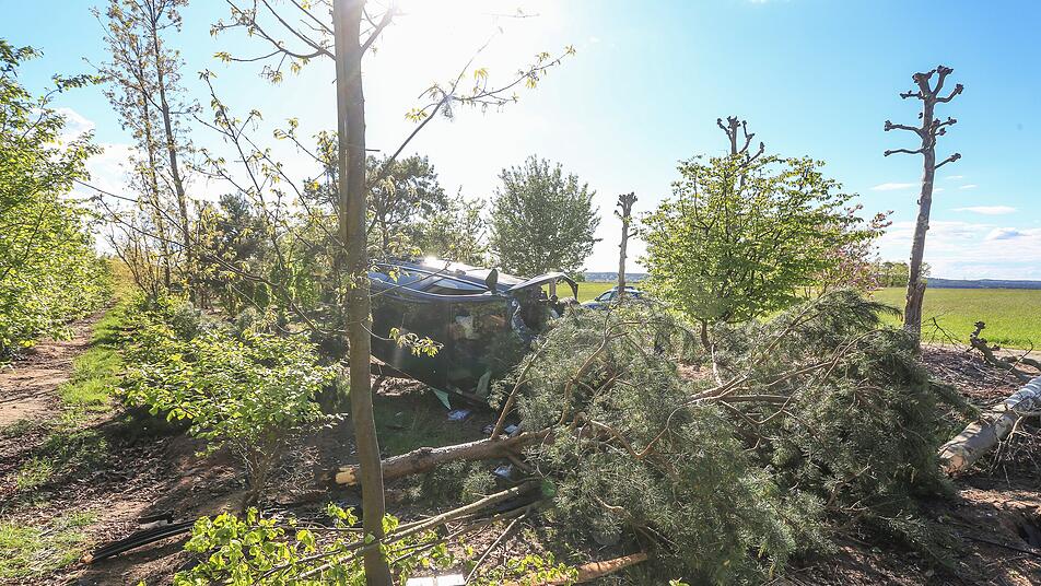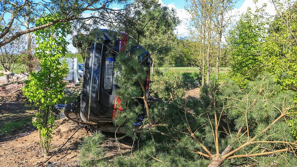 Spektakulärer Unfall bei Langensendelbach: Auto durchpflügt Feld und kracht in Baumschule