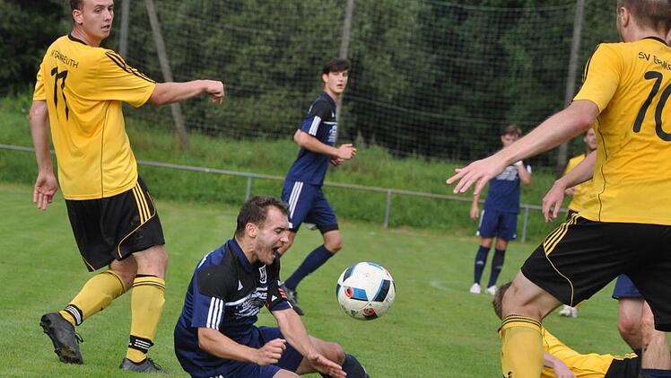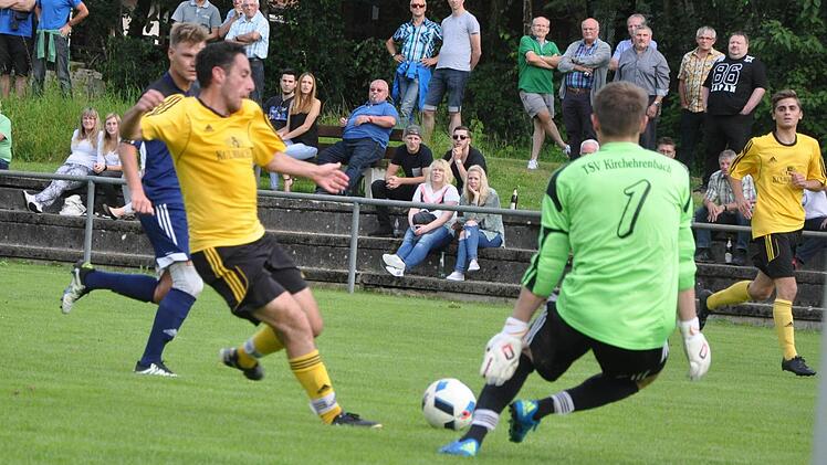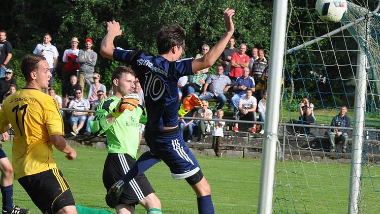 Der Ermreuther Michael Noegel fabriziert den entscheidenden Elfer gegen den TSV Kirchehrenbach.