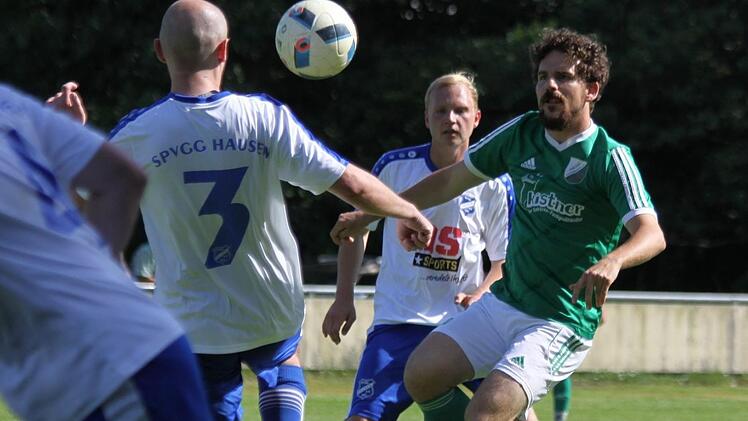 DJK-Trainer Lutz Reinhold saß krankheitsbedingt zunächst auf der Bank, aber in der momentanen Phase kann die beste Rückrundenmannschaft sogar das kompensieren. Die gnadenlos aufs Feld brennende Sonne war für beide Teams ein Handicap, weswegen die Hausherren den Ball laufen ließen, denn bekanntlich ist die Lederkugel der einzige auf dem Feld, der nicht müde wird. Nach einem Ballgewinn kam Philipp Fischer an die Pille, spielte sie scharf vor das Hausener Tor, wo sie Tobias Freimuth technisch sauber zum 1:0 in die Maschen drückte (12.).