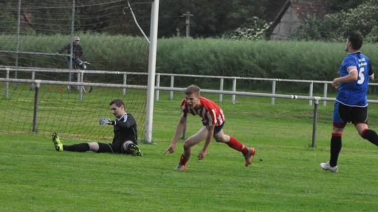 Aber auch schon der erste gefährliche Angriff brachte die Führung, jedoch mit Unterstützung von SV-Keeper Peter Weber, der keinen Sahnetag erwischte und bei einer Bogenlampe zu spät aus dem Kasten kam. Vor seinen Fäusten köpfte Michael Richter die Murmel zum 0:1 in die Maschen (6.). Nur langsam erholte sich die Dachwald-Elf und kam erst in der 25. Minute über Tobias Seeberger, dessen Versuch am Aluminium vorbei strich, zur ersten Chance. Aber die Gäste bleiben bei hohen Flanken immer gefährlich. Andreas Fechner, einer der erfahrenen Heimakteure, chippte kurz vor der Pause direkt in die Arme von Gästekeeper Thorsten Sailer, der selten gefordert wurde - nicht nur in dieser Szene war mehr drinnen.